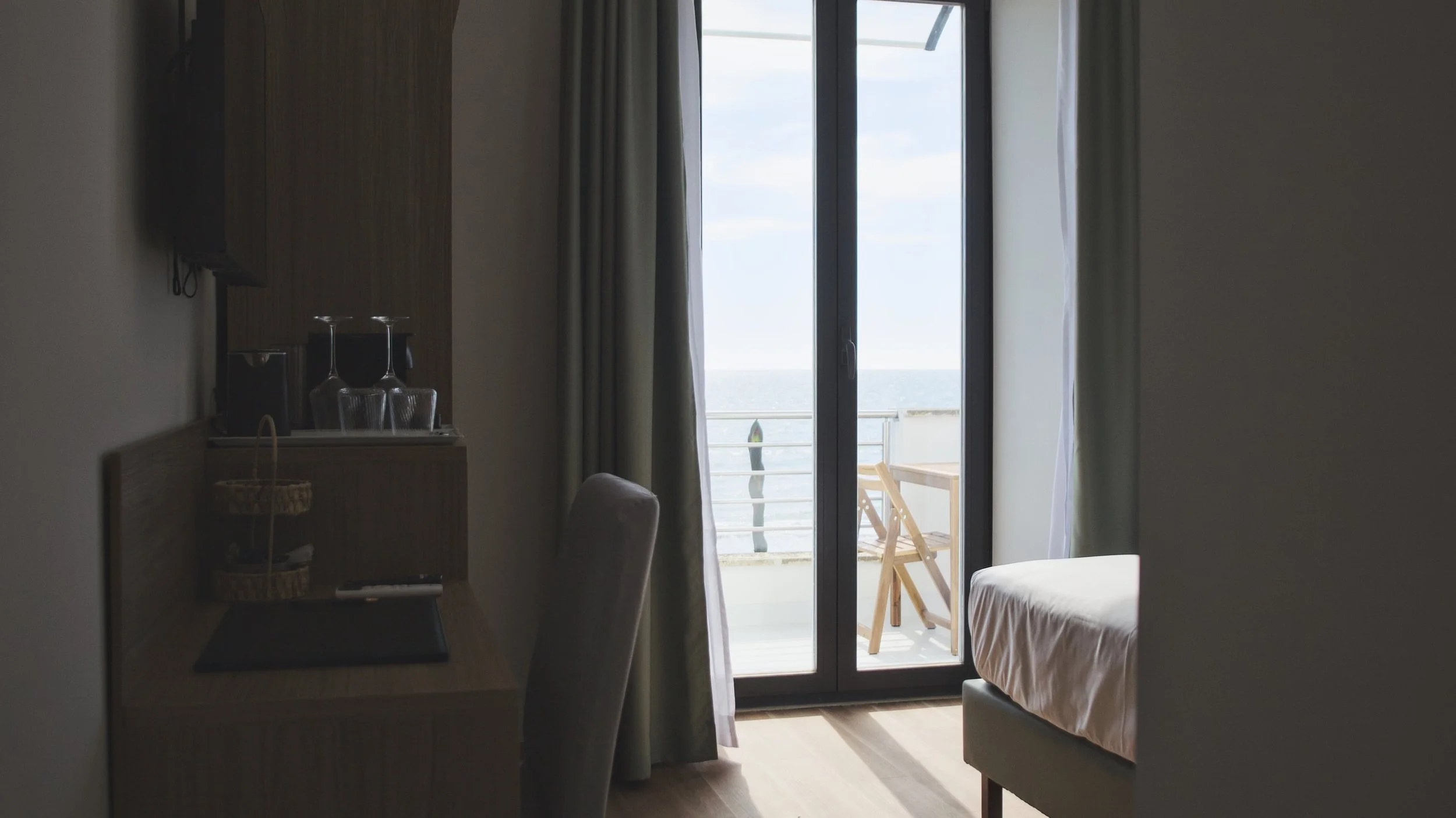 Spaziosa e luminosa, con vista mare e balcone privato. Un ambiente elegante e contemporaneo, ideale per chi cerca qualcosa in più.
